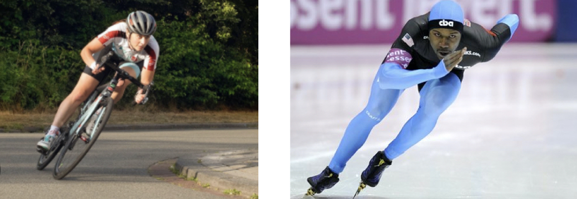 In de bocht is het beeld van een schaatser hetzelfde als van een wielrenner: beiden ‘hangen in de bocht’.